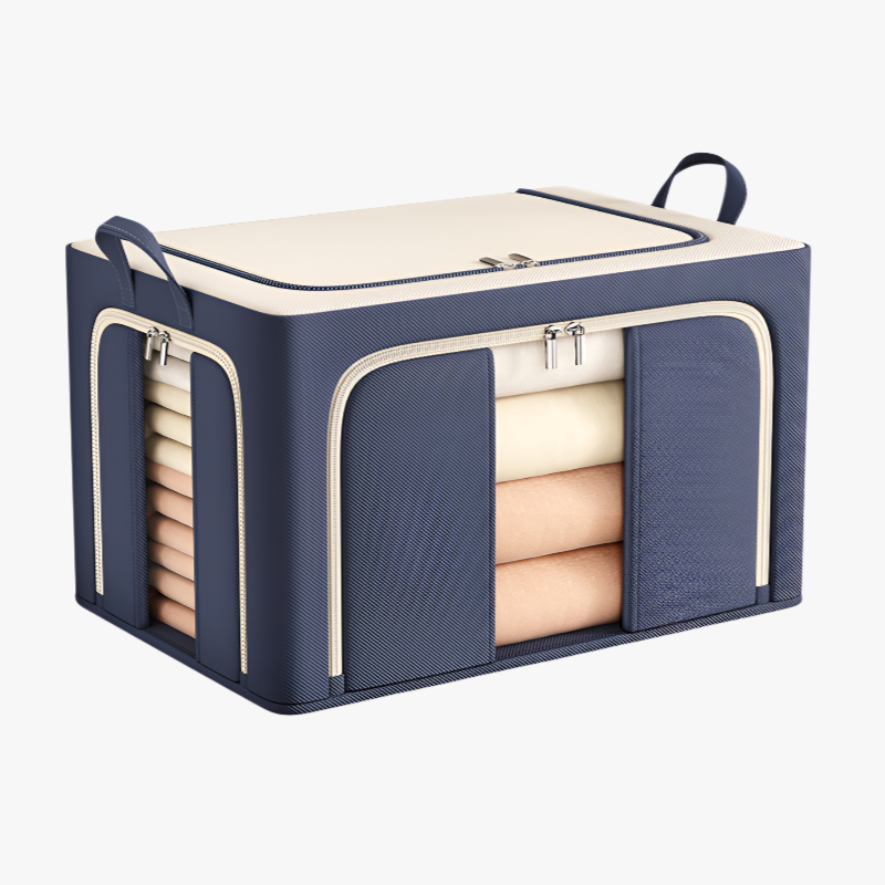 収納ボックス 折りたたみ 衣装ケース 【天面・前面・側面 3方向開閉】 鉄骨フレーム スタッキング 布団収納ケース 衣類 整頓ボックス 中身が見える窓付き 大容量 防塵 防湿 耐荷重 66L/100L